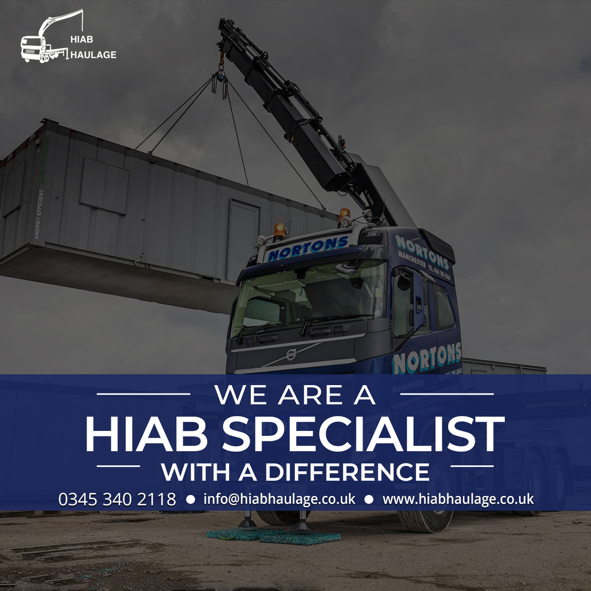 Our HIAB lorries have a lorry mounted crane which is utilised to lift cabins & cargo off the wagon and transfer them into position.