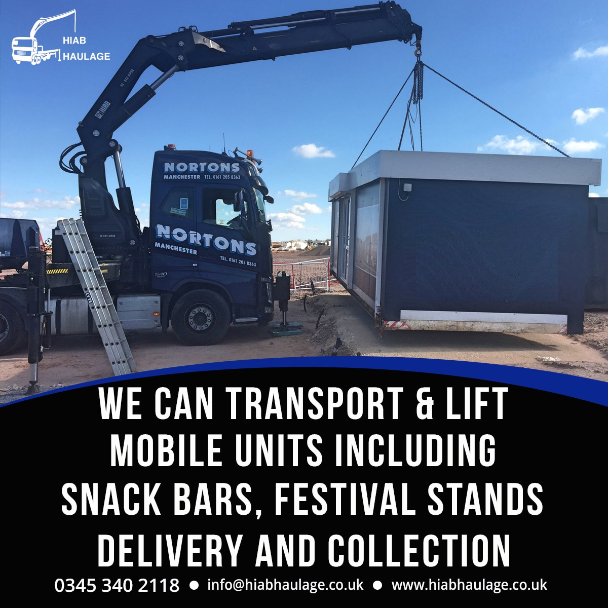We can transport & lift mobile units including snack bars, festival stands delivery & collection